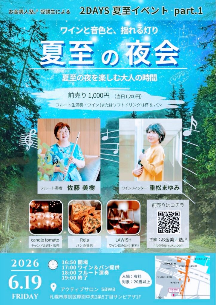 前夜祭になる「夏至の夜会」は ”ワインと音色と、揺れる灯り”と題して